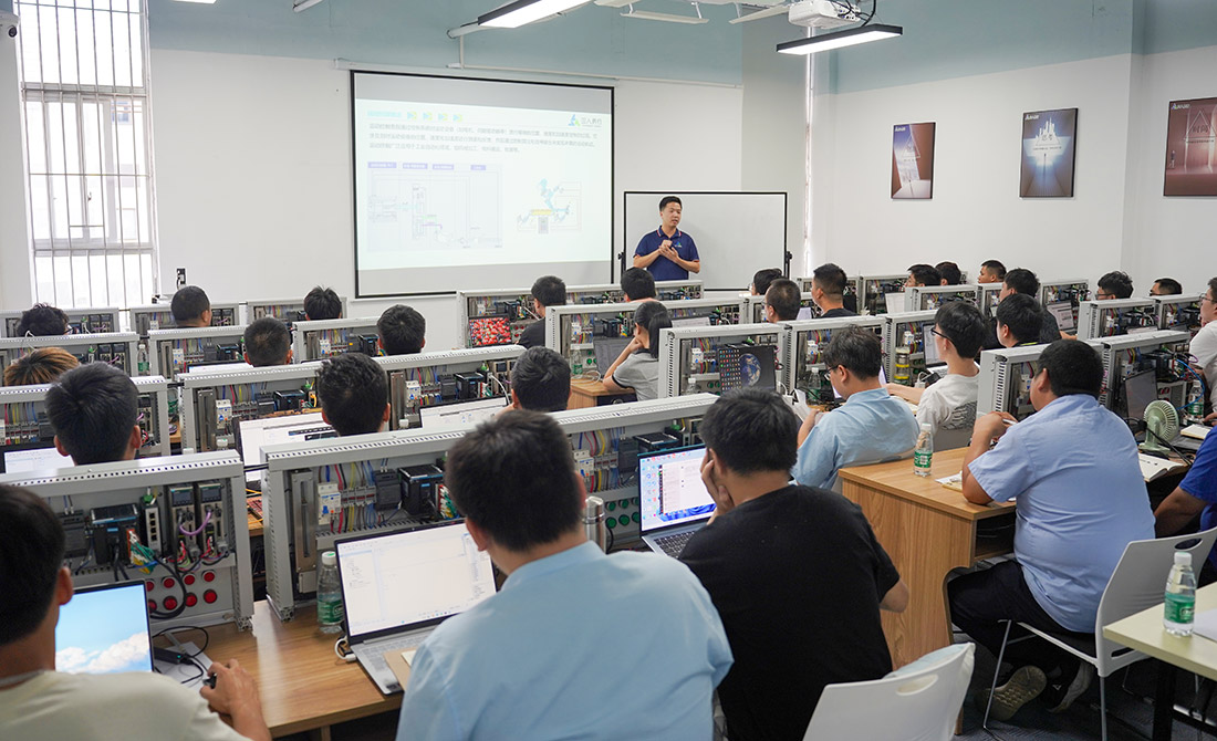 技能課程夠全面。涵蓋電工、PLC 編程、驅(qū)動(dòng)應(yīng)用、視覺等全套系統(tǒng)集成,以理論+實(shí)操相結(jié)合;LAD+SCL 兩種主流編程語言教學(xué);導(dǎo)師+助教雙師教學(xué);上課+晚自習(xí)集中訓(xùn)練方式。 (4)各類通訊夠齊全:EtherCat,TCP/IP,Modbus TCP 等等通訊,全方位了解 PLC 與 MES,掃碼槍,RFID,視覺等等相關(guān)通訊