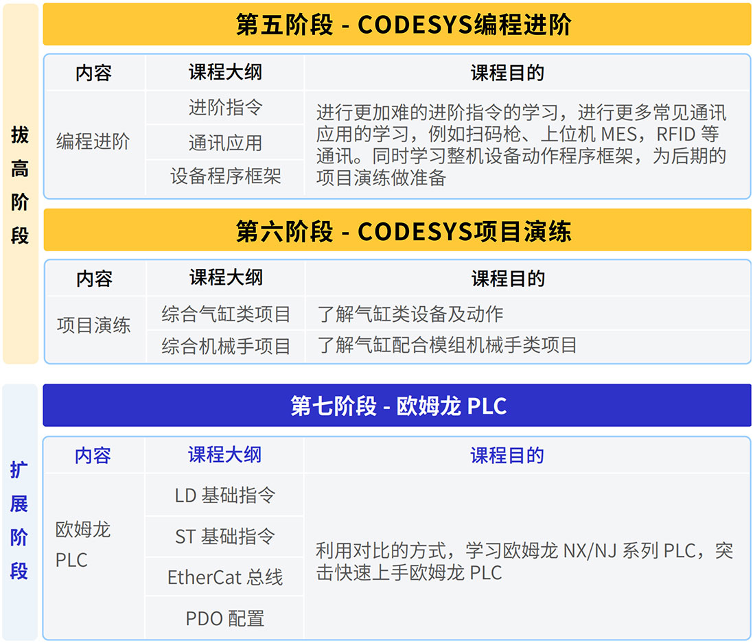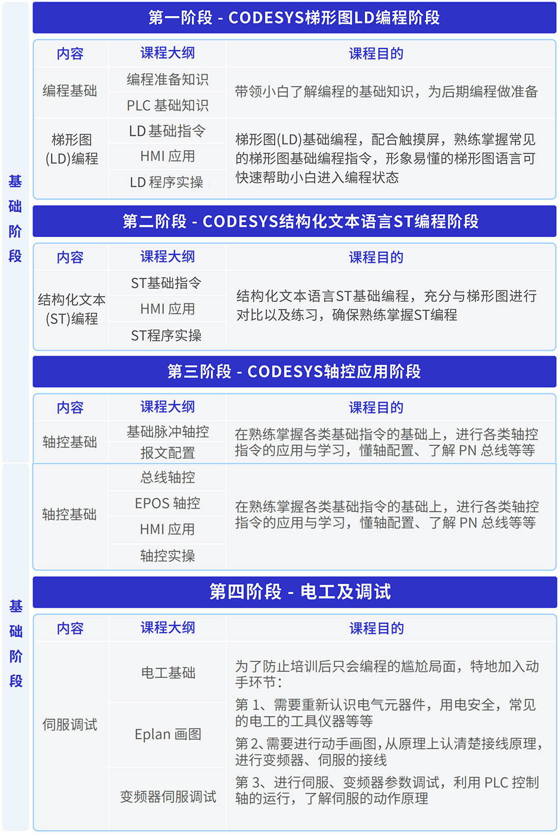 技能課程夠全面。涵蓋電工、PLC 編程、驅(qū)動(dòng)應(yīng)用、視覺等全套系統(tǒng)集成,以理論+實(shí)操相結(jié)合;LAD+SCL 兩種主流編程語言教學(xué);導(dǎo)師+助教雙師教學(xué);上課+晚自習(xí)集中訓(xùn)練方式。 (4)各類通訊夠齊全:EtherCat,TCP/IP,Modbus TCP 等等通訊,全方位了解 PLC 與 MES,掃碼槍,RFID,視覺等等相關(guān)通訊課程特色: